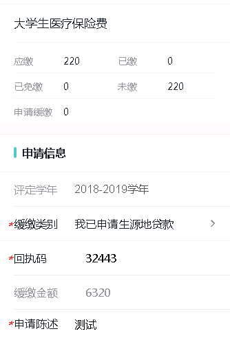11.点击“绿色通道”,学生可对学费和住宿费申请绿色通道,其它收费项目不能申请绿色通道,申请信息中选择缓交类型,回执码,上传证明材料,点击提交,如下图(未办理助学贷款请直接进入第三步-在线选房,已上传助学贷款材料的进行资格审查,审查周期为24小时,请耐心等待审核结果后进入第三步-在线选房)
