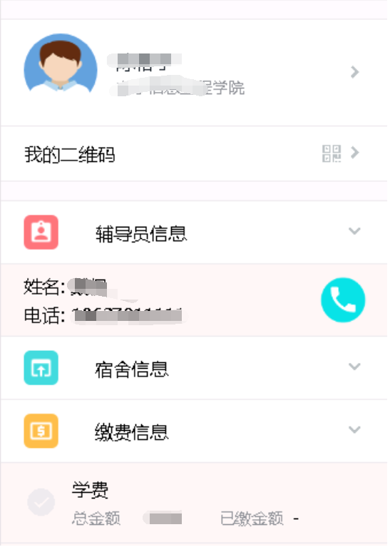 6.点击页面上方的学生姓名后的大于号可以展开显示学生的基本信息情况,如下图