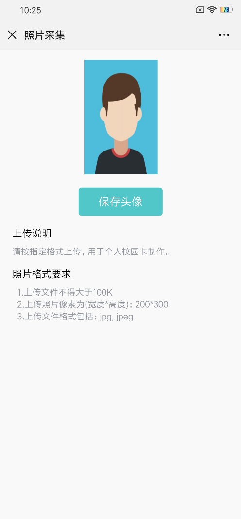 10.点击“照片采集”,上传个人照片,上传的照片需要按照规定的尺寸,大小和格式上传,如下图