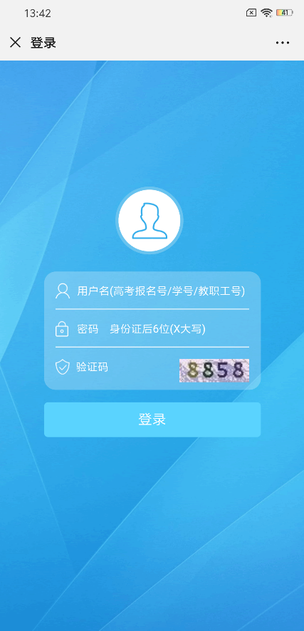 2.扫码后进入登录页面,输入学校统一身份认证账号和密码(身份证后6位,如修改密码就用修改后密码登录),输入点击登录,如下图