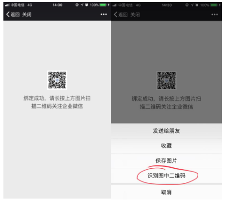 4.绑定完成后会弹出二位码,长按二维码关注即可,如下图